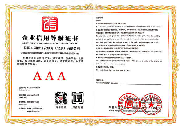企業(yè)信用等級證書AAA級